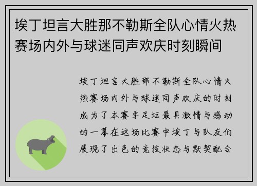 在足球比赛中,进球不仅仅是比分的提升,它还承载着无数情感的宣泄、团队的荣耀以及个体的自我表达。2023年,在一场备受瞩目的比赛中,曼联的安东尼以一粒绝平进球帮助球队扳平比分,而他随之进行的庆祝方式却引起了广泛的讨论。不同于传统的热烈庆祝,安东尼复刻了葡萄牙巨星C罗曾经经典的冷静庆祝动作,这一举动不仅让全场沸腾,更在情感上将激情与致敬巧妙结合,成为赛后话题的焦点。本文将从四个方面对安东尼绝平进球后复...